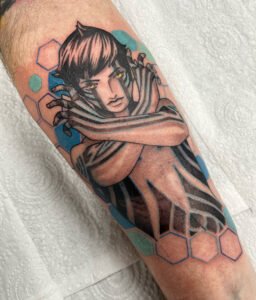 I love connecting with fellow nerds to turn your favourite characters into forever art, and I specialise in colourful tattoos inspired by sci-fi, horror, and fantasy.